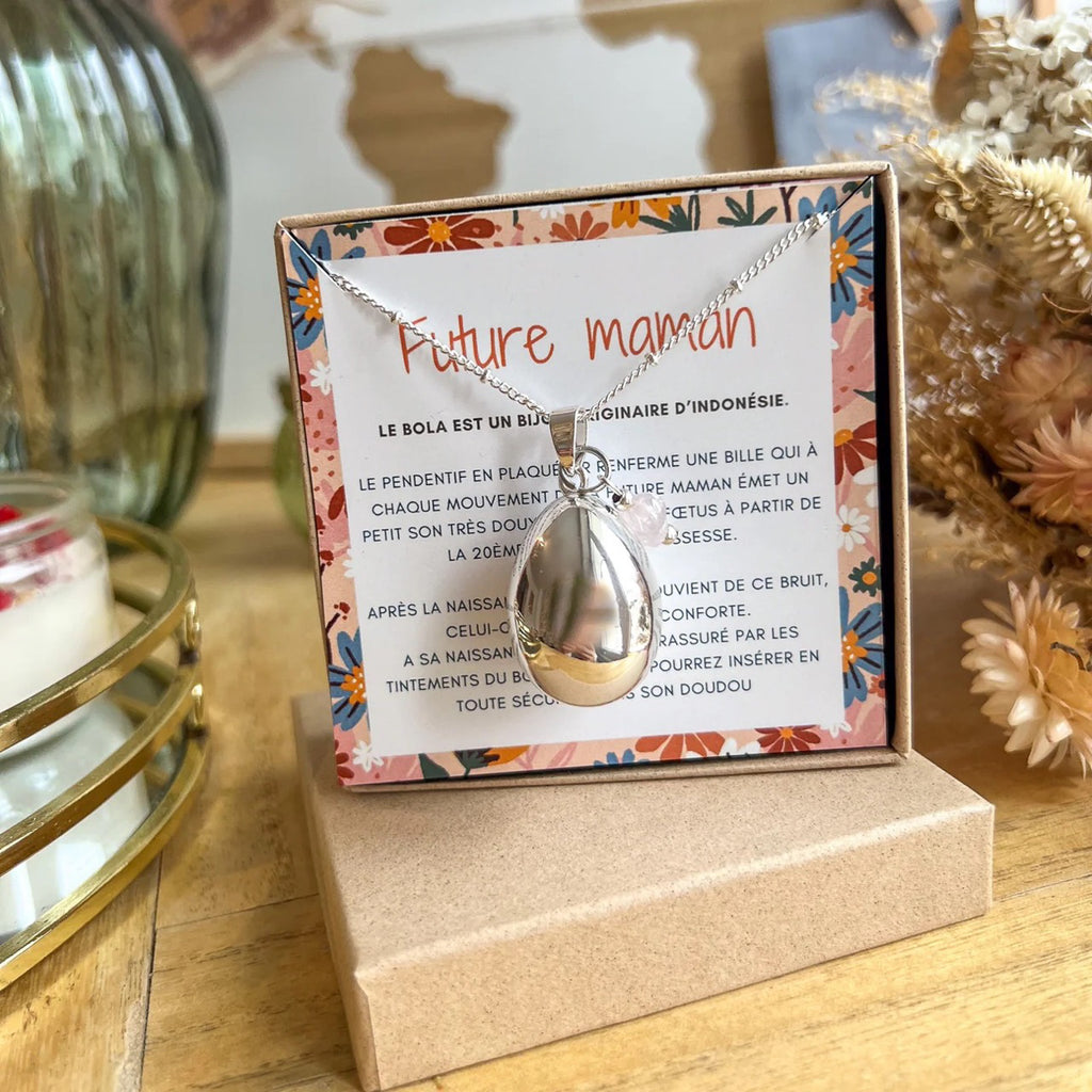 Bola de grossesse esprit bohème est pensé comme un bijou-totem qui créera un véritable lien entre bébé et vous tout au long de votre grossesse.