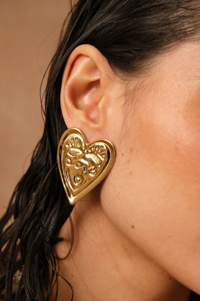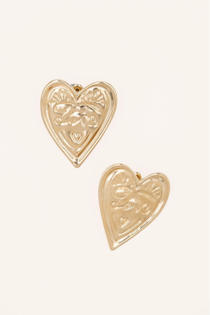 Boucles d'oreilles puces en acier inoxydable composées d'un coeur et d'un message Love gravé.