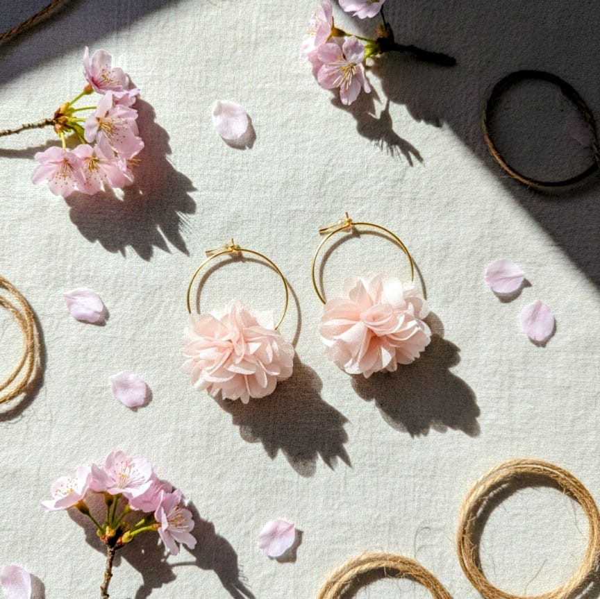L'élégance poétique et le charme d'antan se rencontrent dans ces boucles d'oreilles d'exception. Inspirées par la douceur de la nature, ces fleurs en tissu vaporeux apportent une touche romantique, aérienne et résolument féminine à votre style.