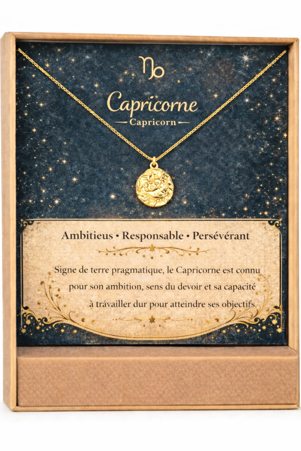Offrez (ou offrez-vous) un collier plein de sens, imaginé comme un message précieux pour celles qui avancent avec ambition et élégance. Le Capricorne incarne la persévérance, la fiabilité et une grande profondeur.