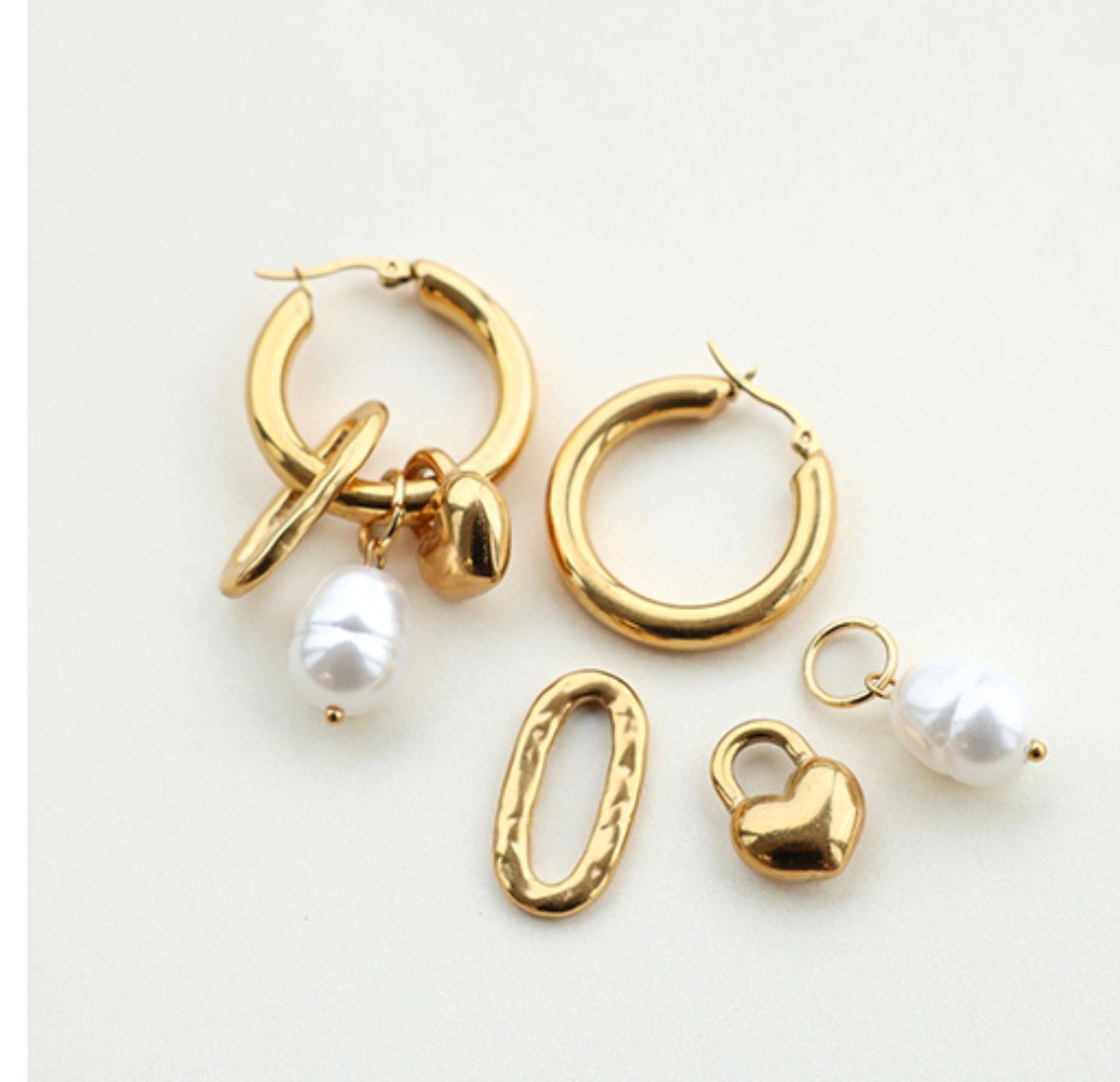 Boucles d’oreilles créoles dorées avec charms coeur et perle
