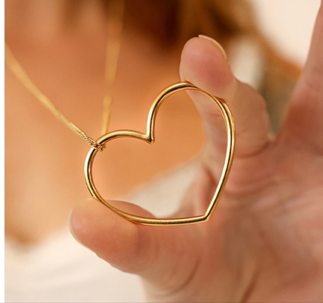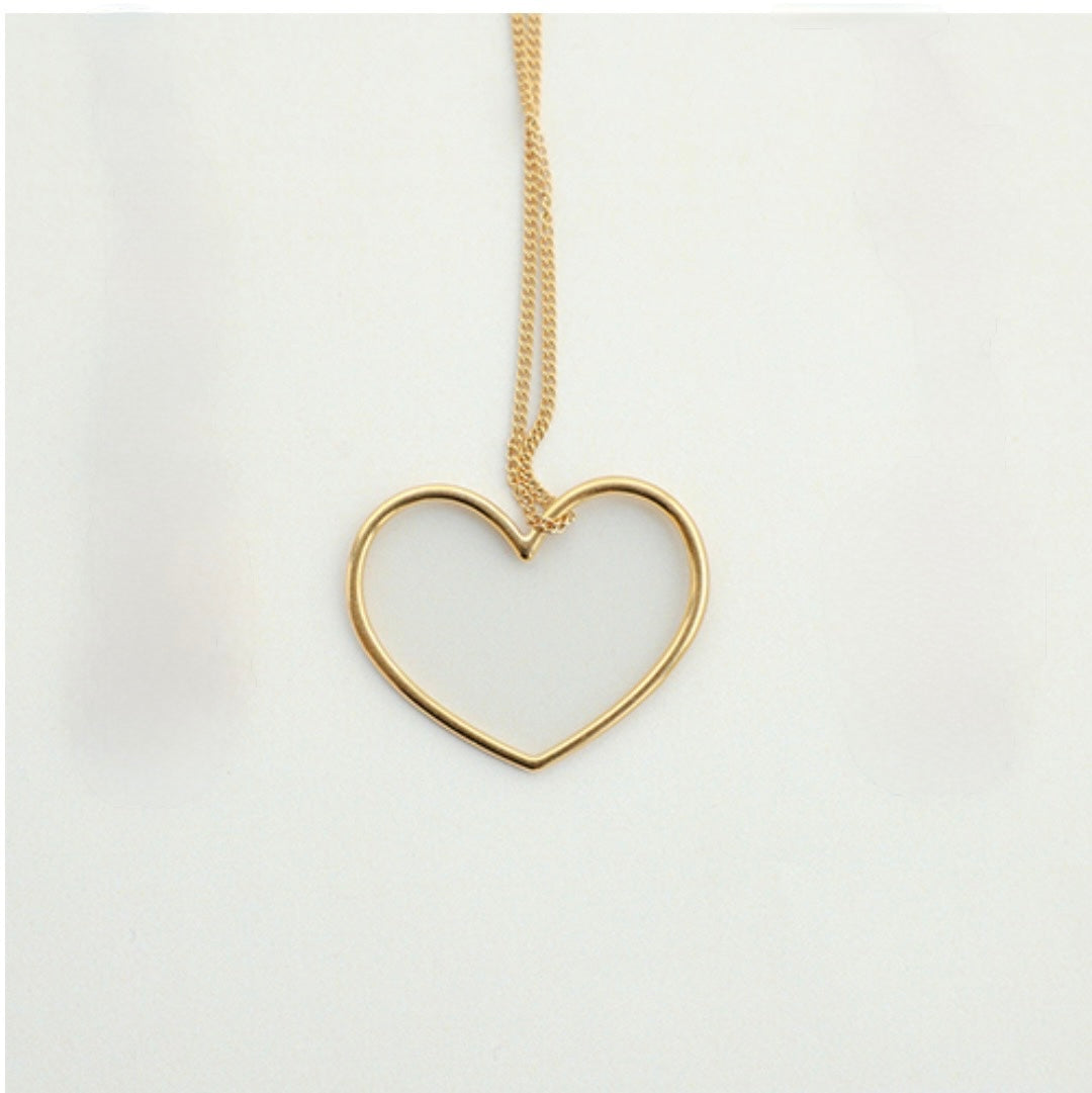 Ce collier au design épuré met en valeur un pendentif en forme de cœur ajouré, symbole intemporel d’amour et de délicatesse. Réalisé en métal doré lisse et brillant, il se distingue par ses lignes fines et harmonieuses, offrant un rendu à la fois moderne et féminin.