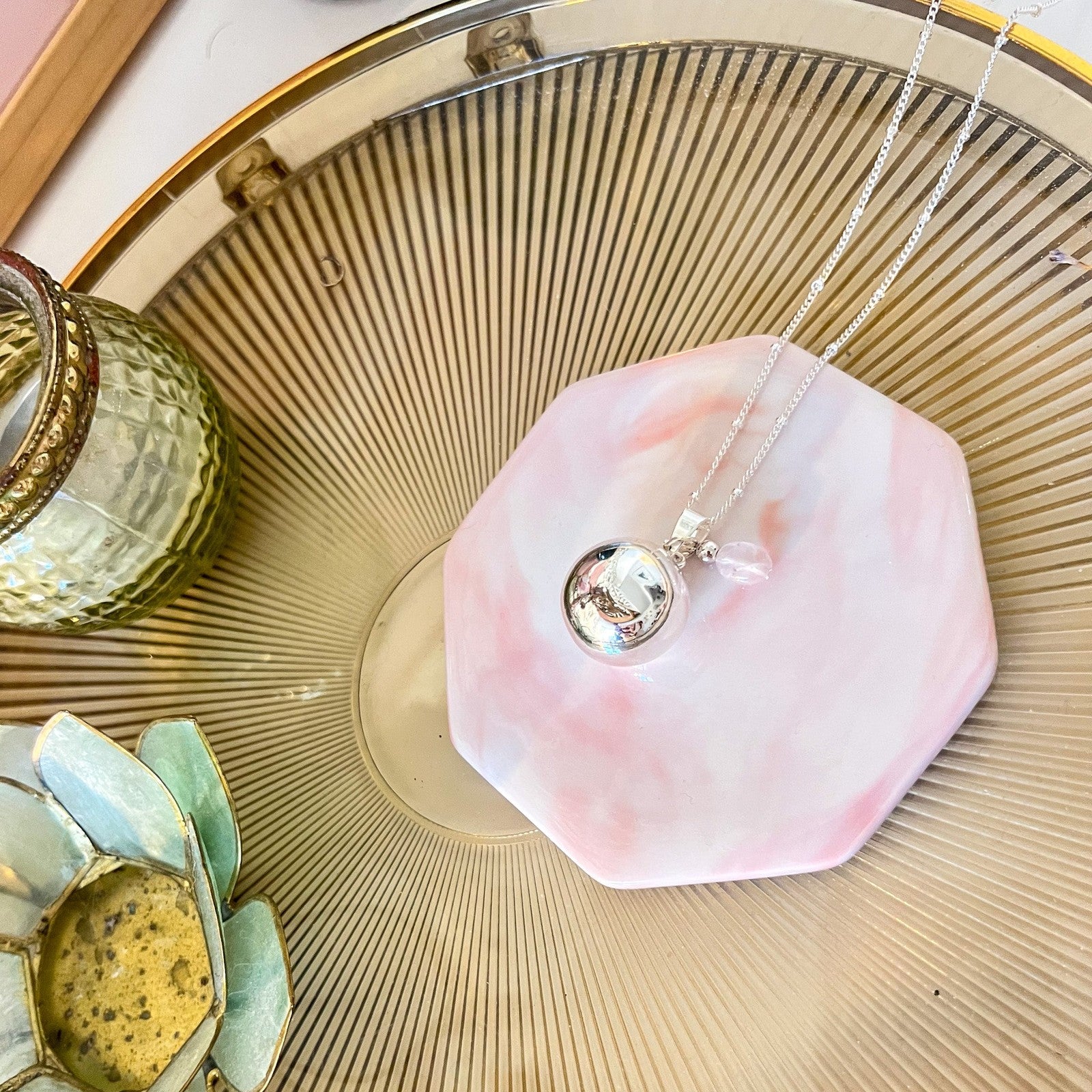 Le Bola de grossesse argent avec pierre naturelle au choix est un collier symbole de maternité, conçu pour accompagner avec douceur chaque future maman tout au long de sa grossesse. Ce bijou artisanal en plaqué argent 925 sterling mêle élégance bohème, esthétique raffinée et sens profond, créant un lien précieux entre vous et votre bébé.