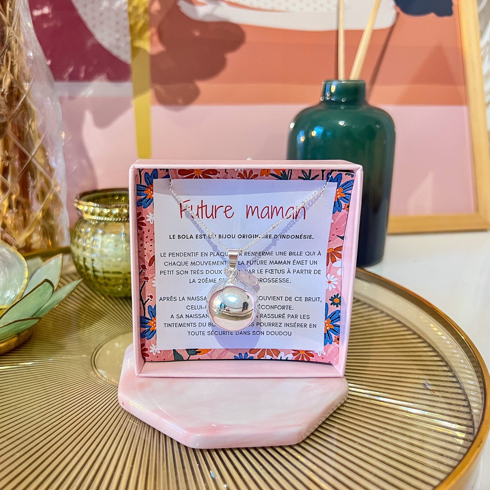 Ce bola de grossesse est disponible en plaqué argent lisse, vous permettant de choisir le style qui correspond le mieux à votre personnalité. La chaîne longue de 110 cm avec rallonge de 5 cm est pensée pour être portée au niveau du ventre, valorisant naturellement vos tenues de grossesse.