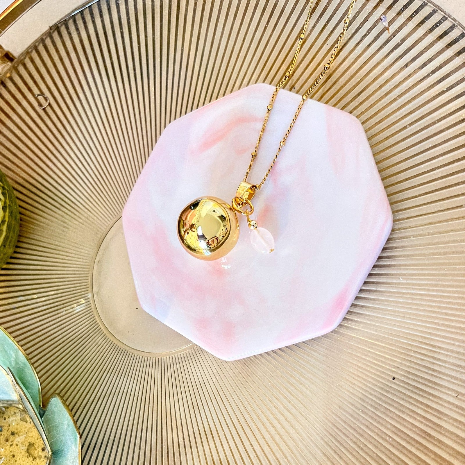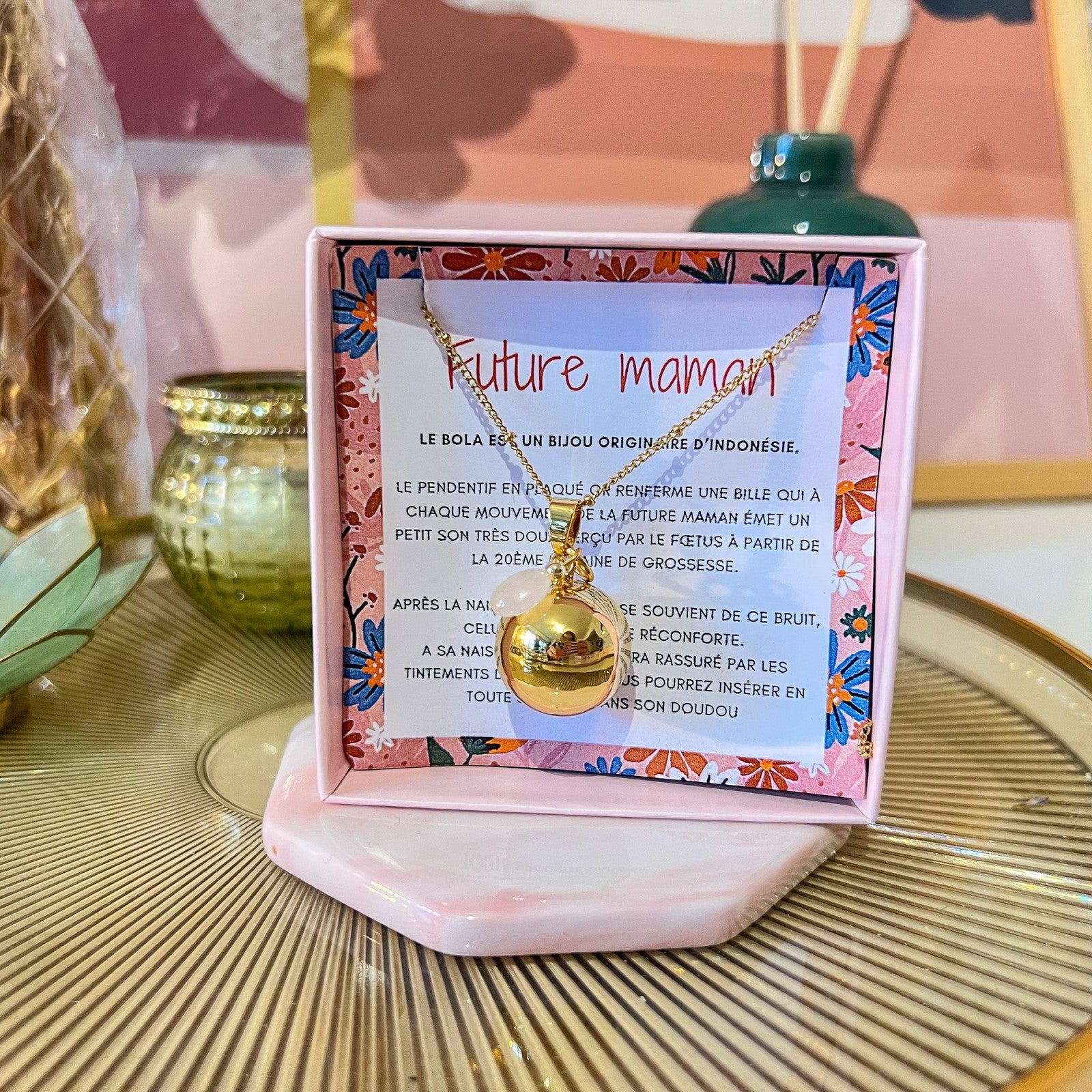 Le Bola de grossesse or avec pierre naturelle au choix est un collier symbole de maternité, conçu pour accompagner avec douceur chaque future maman tout au long de sa grossesse. Ce bijou artisanal en plaqué or 18 k mêle élégance bohème, esthétique raffinée et sens profond, créant un lien précieux entre vous et votre bébé.