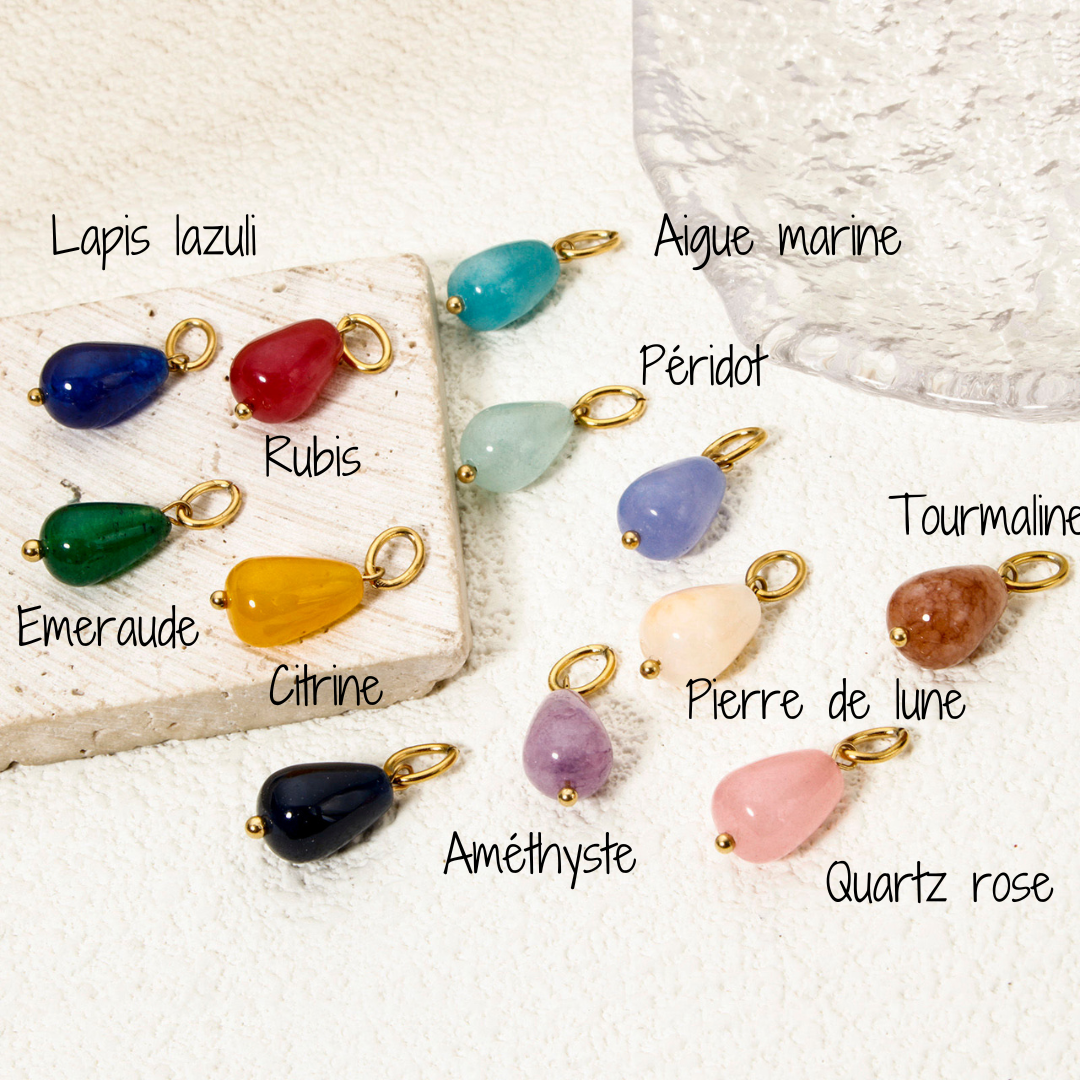 Chaque pierre représente un mois de naissance et véhicule ses propres énergies : amour, protection, chance, sérénité… Sélectionnez celle qui résonne avec votre histoire ou celle d’un être cher pour un bijou unique qui vous ressemble.