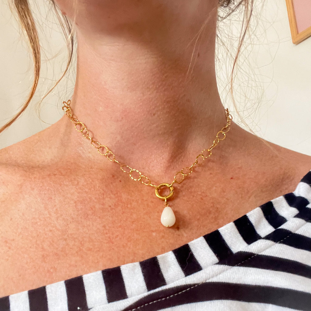 Collier grosse maille avec pierre de naissance au choix